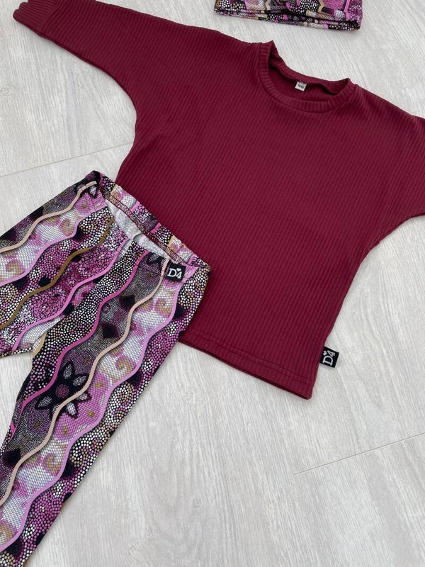 - Cuff legging mozaïek - Oversized sweater Bordeaux - Twisted headband mozaïek