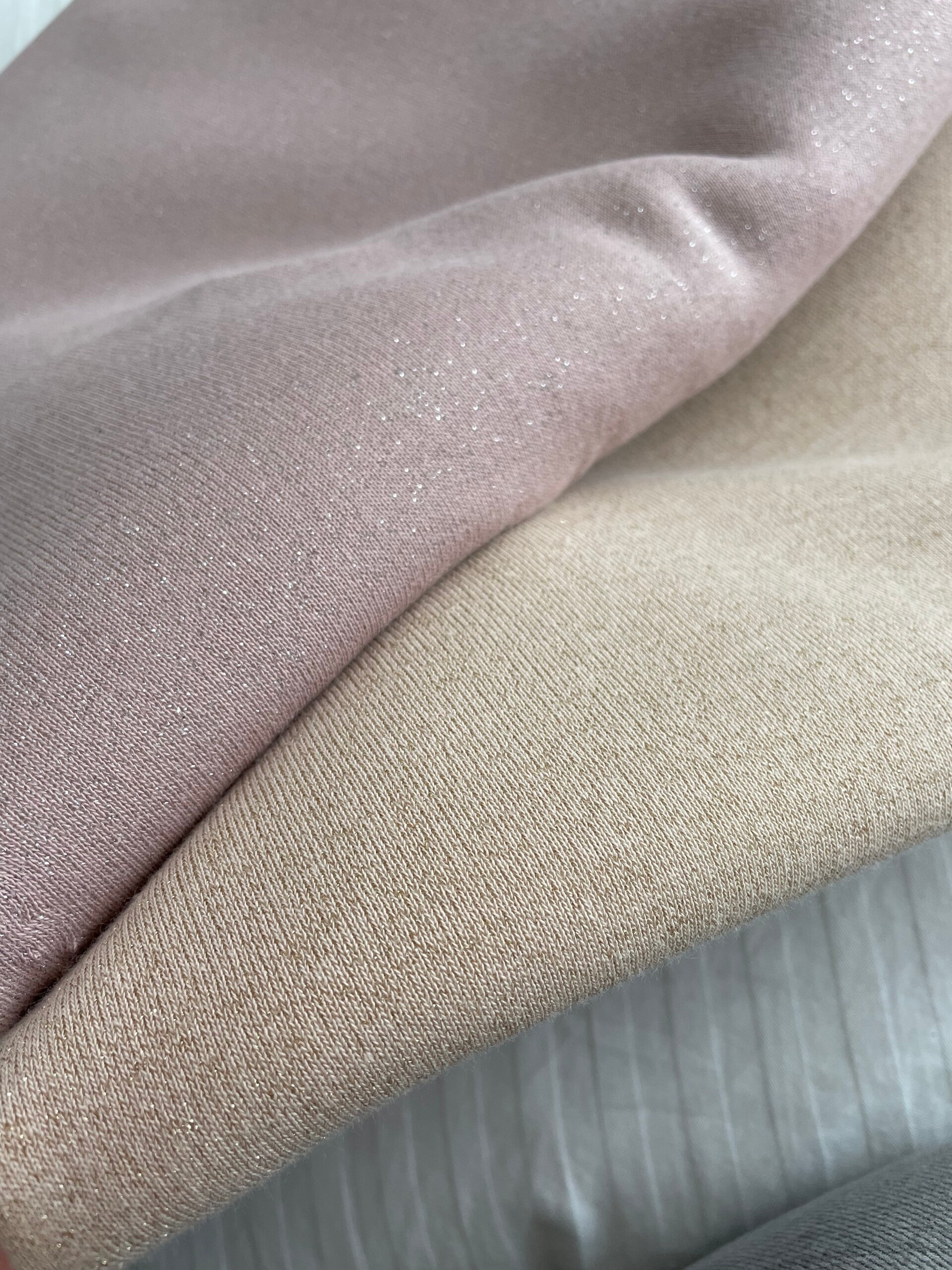 De blush kleur heeft een heel fijn zilver glittertje en de champagne kleur een fijn goud glittertje.