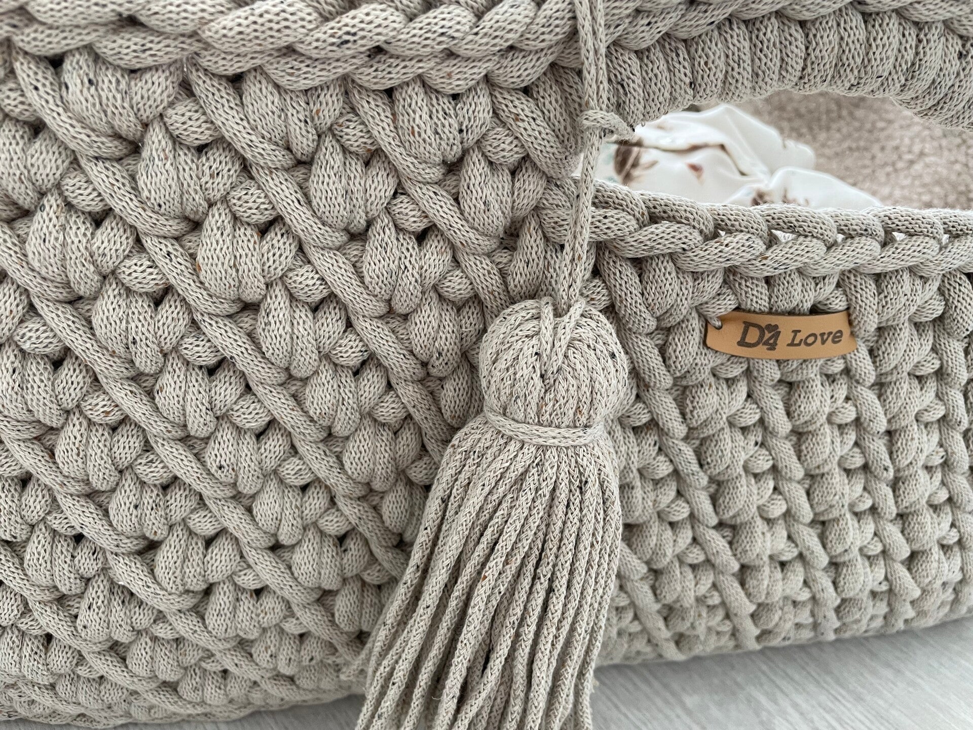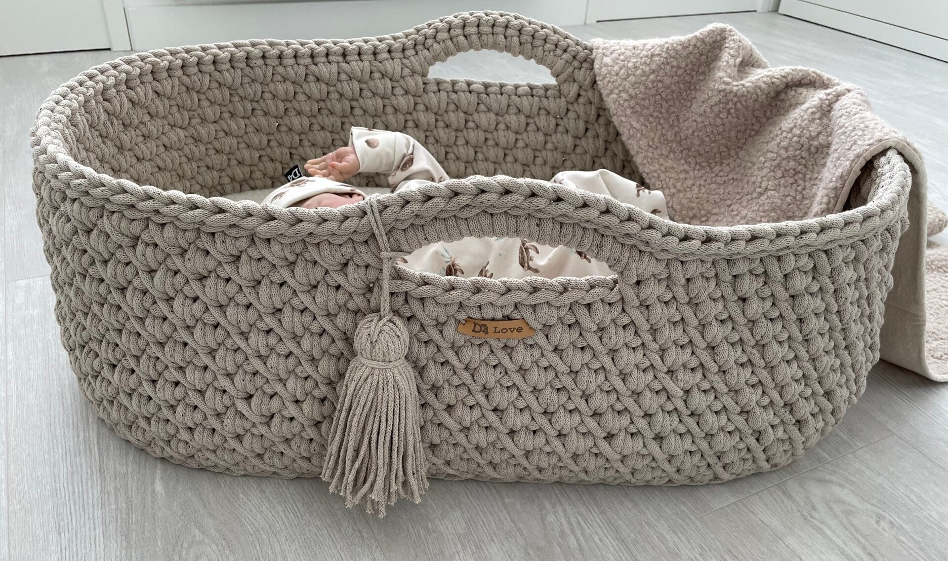 Deze prachtige mozesmand is het ideale wiegje voor de eerste maanden van de pasgeboren baby.