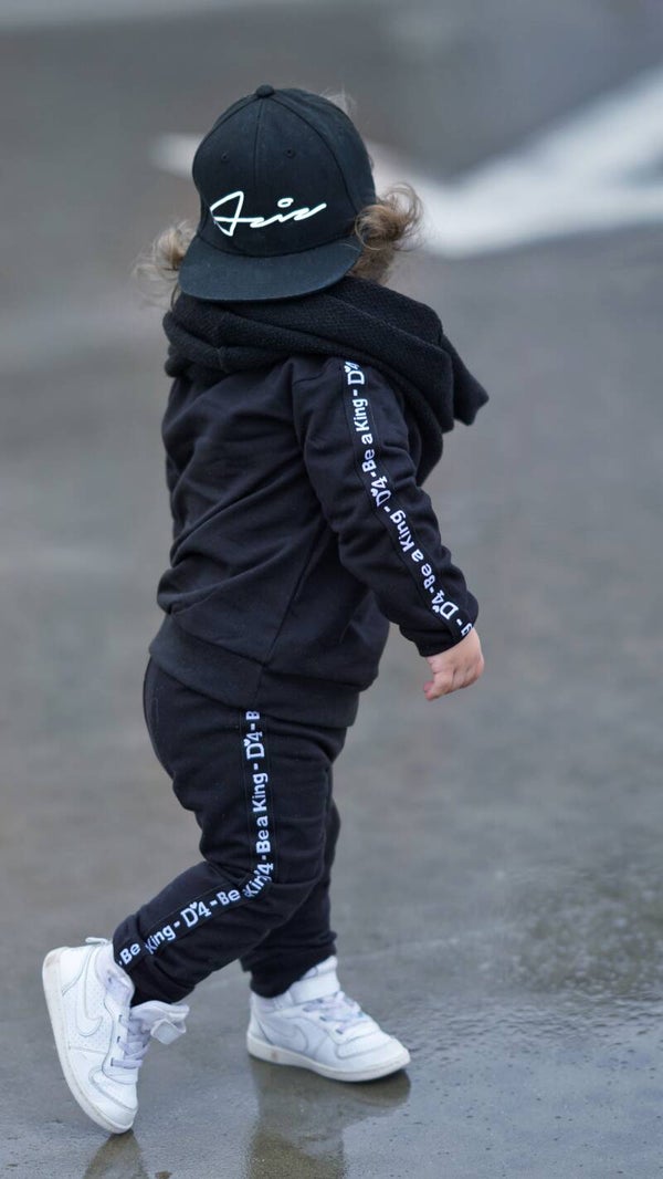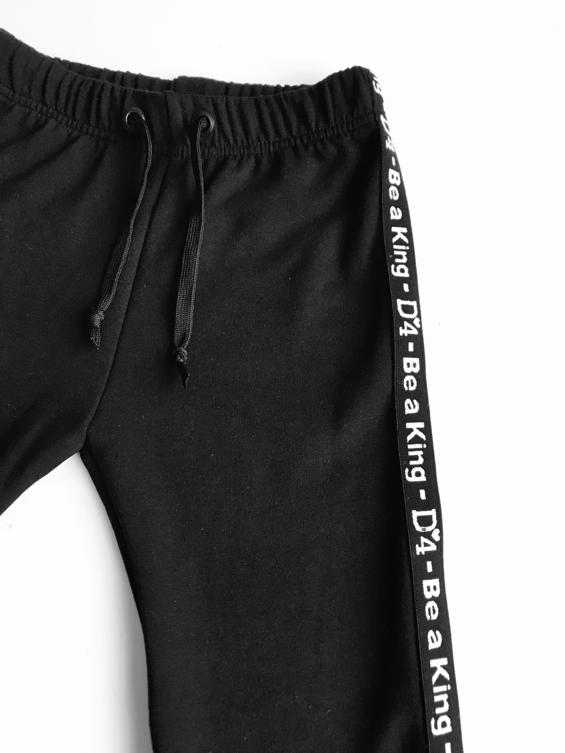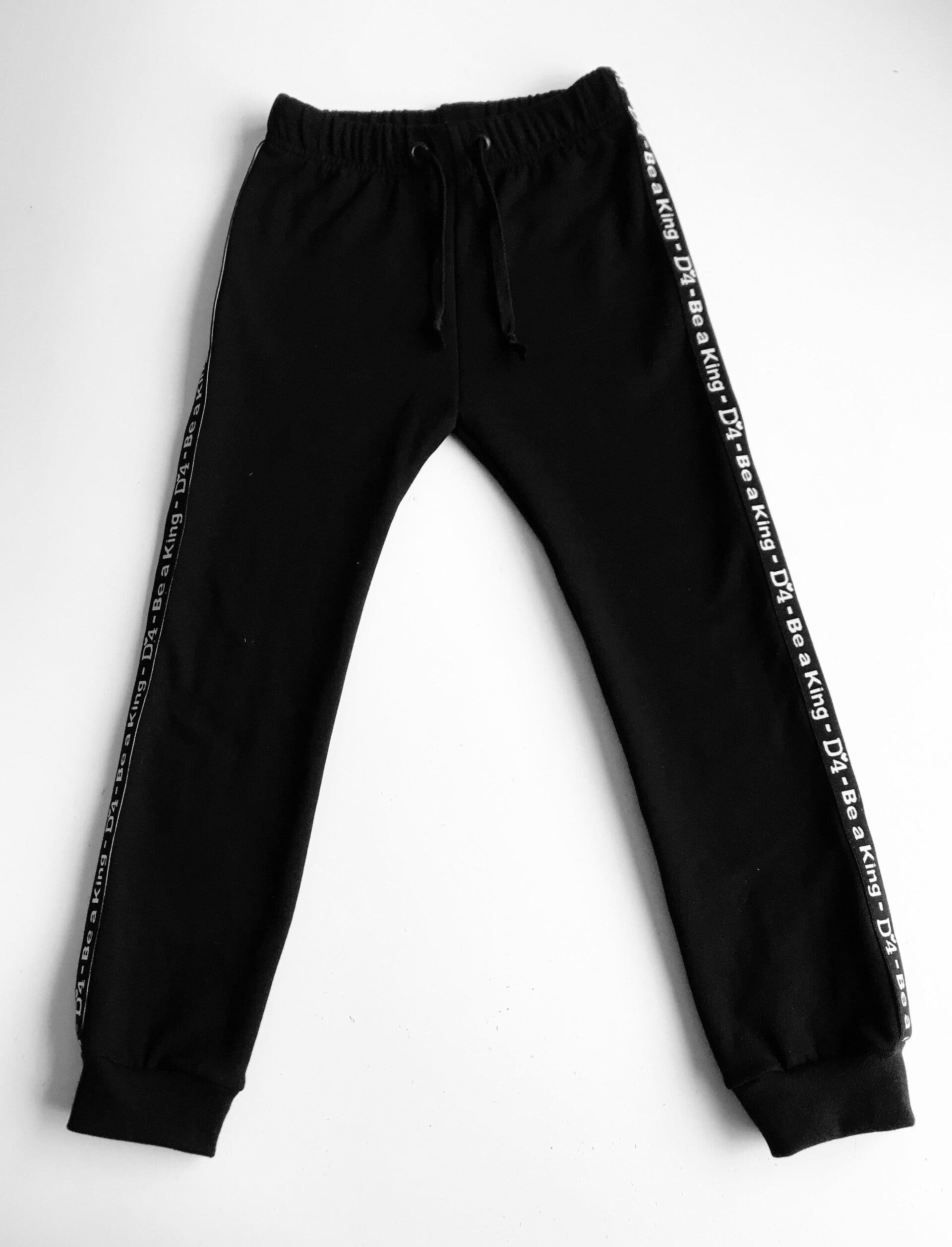 Joggers van zachte sweatstof in een mooie zwarte kleur, aan de zijkant van de pijpen zit een stoere elastieke band gestikt. Het model heeft elastiek en een drawstring in de taille.