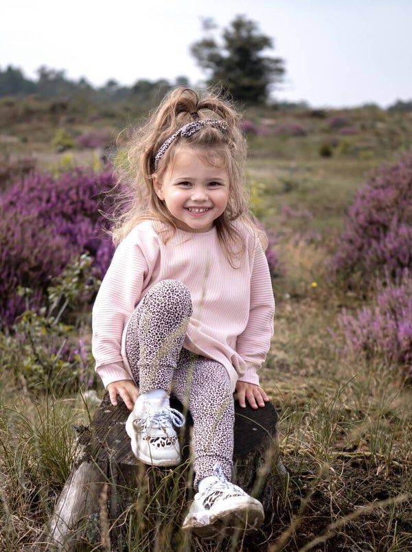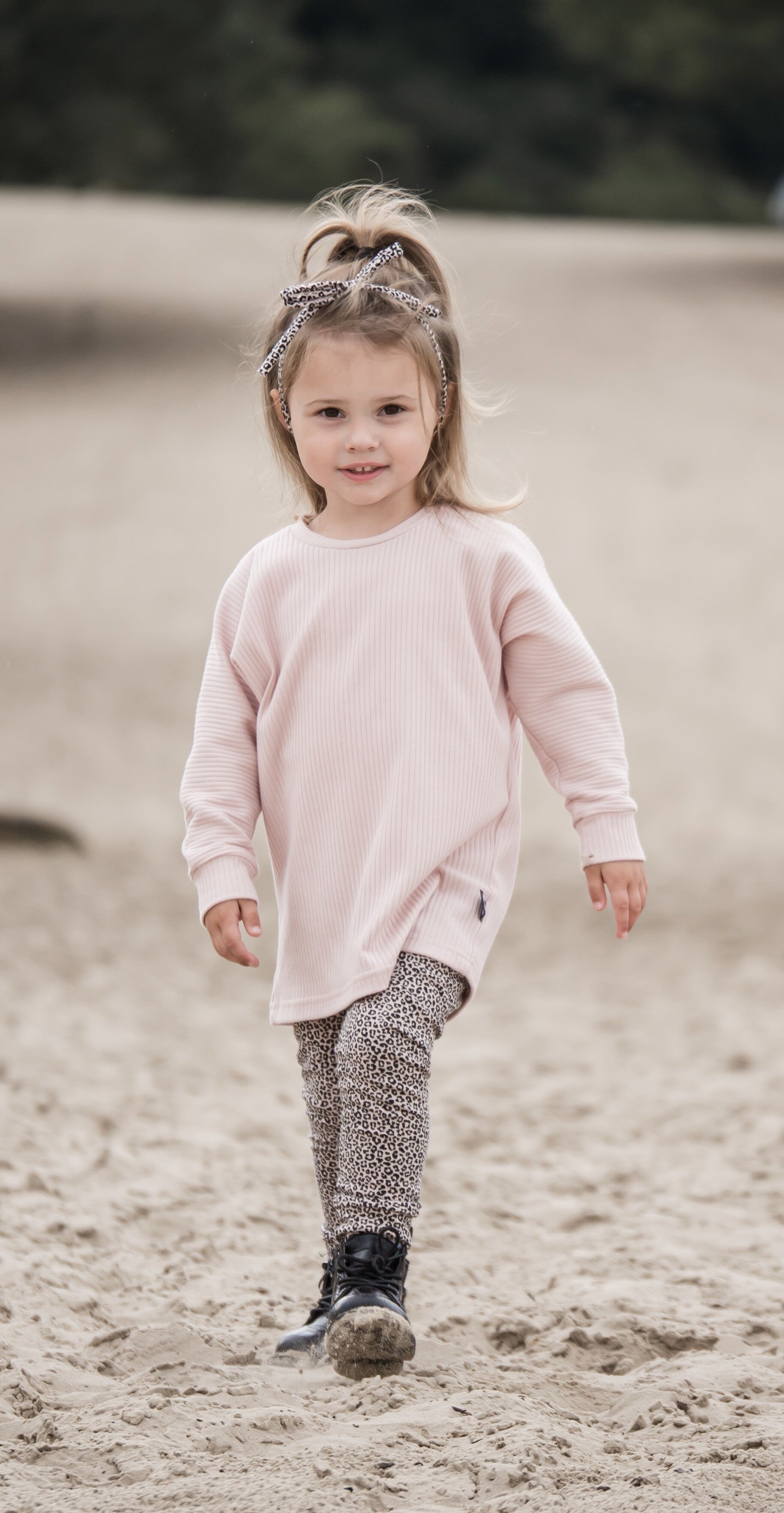 Setje bestaande uit:- Strikkoordje leopard Dusty pink - Oversized sweater Dusty pink- Cuff legging leopard Dusty pink