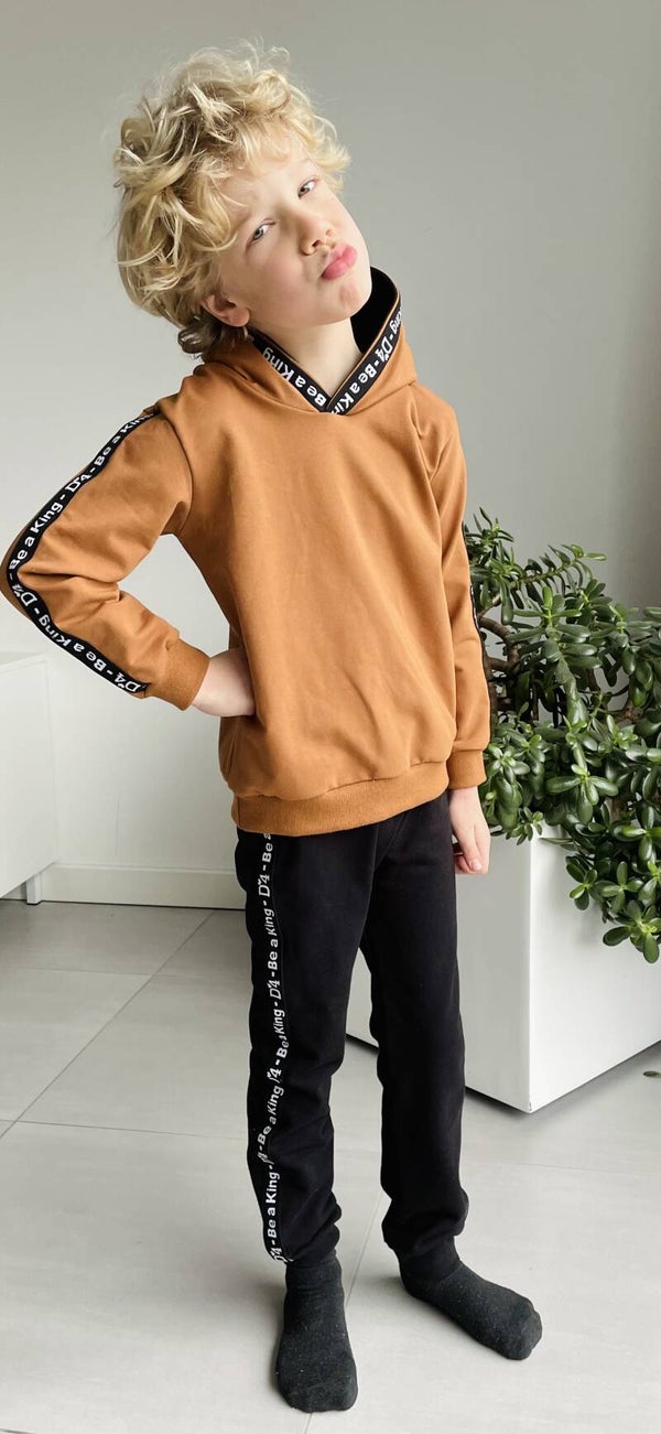 Mooie Mocca hoodie met stoere band aan de mouwen.