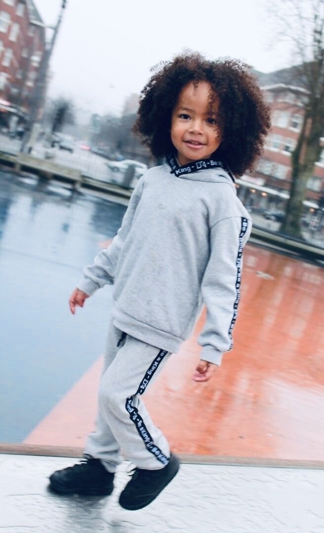 Mooie lichtgrijze hoodie met zachte brushed binnenkant stoere band aan de mouwen.