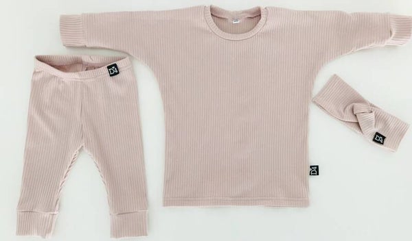 Heerlijk setje in de favoriete rib jersey dit setje bestaat uit een oversized sweater, cuff legging en een twisted haarband kies uit de vele kleuren jouw Favoriet.