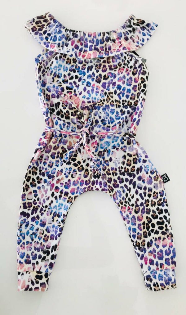 Deze gave jumpsuit kan in verschillende prints besteld worden.