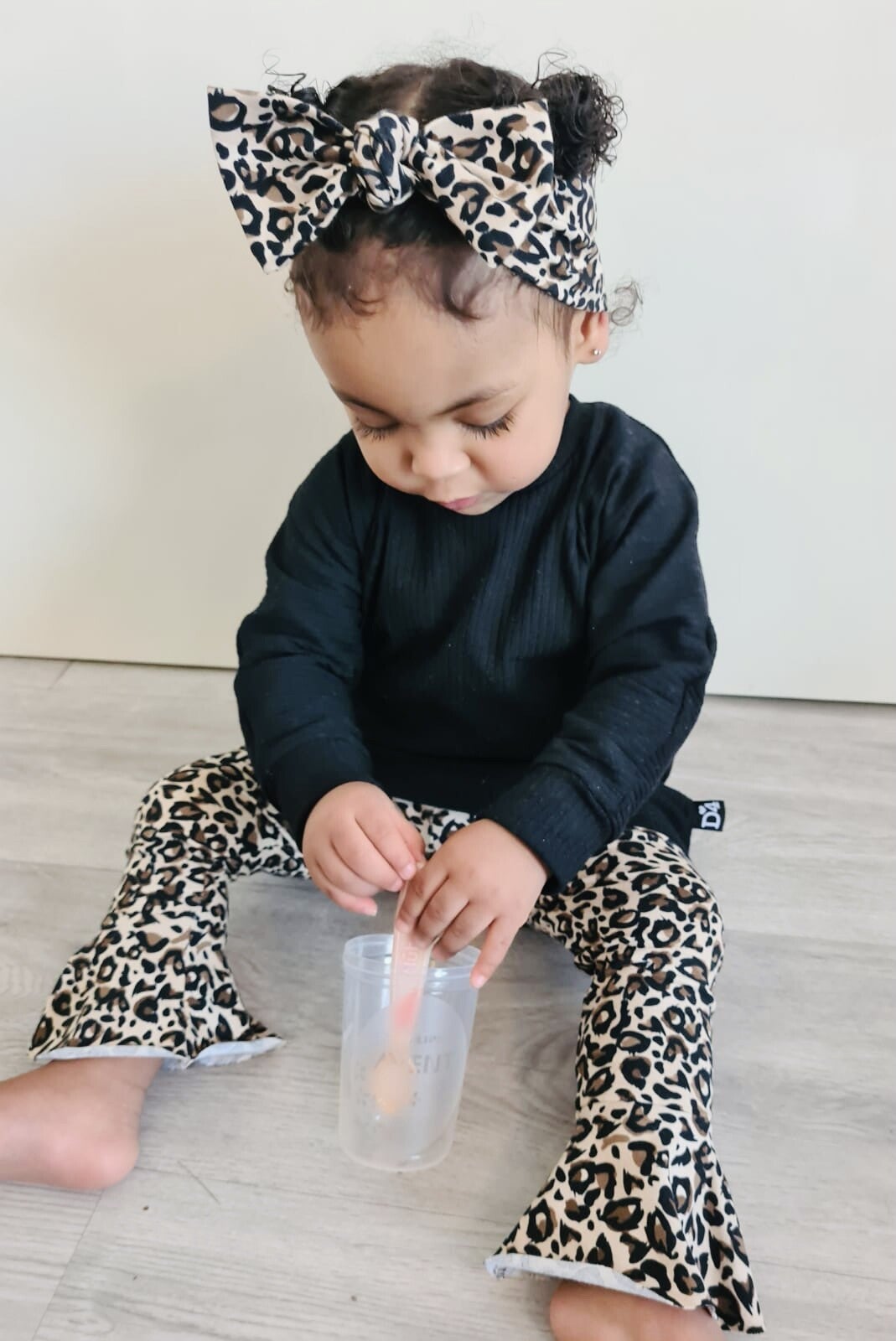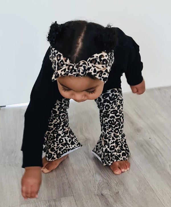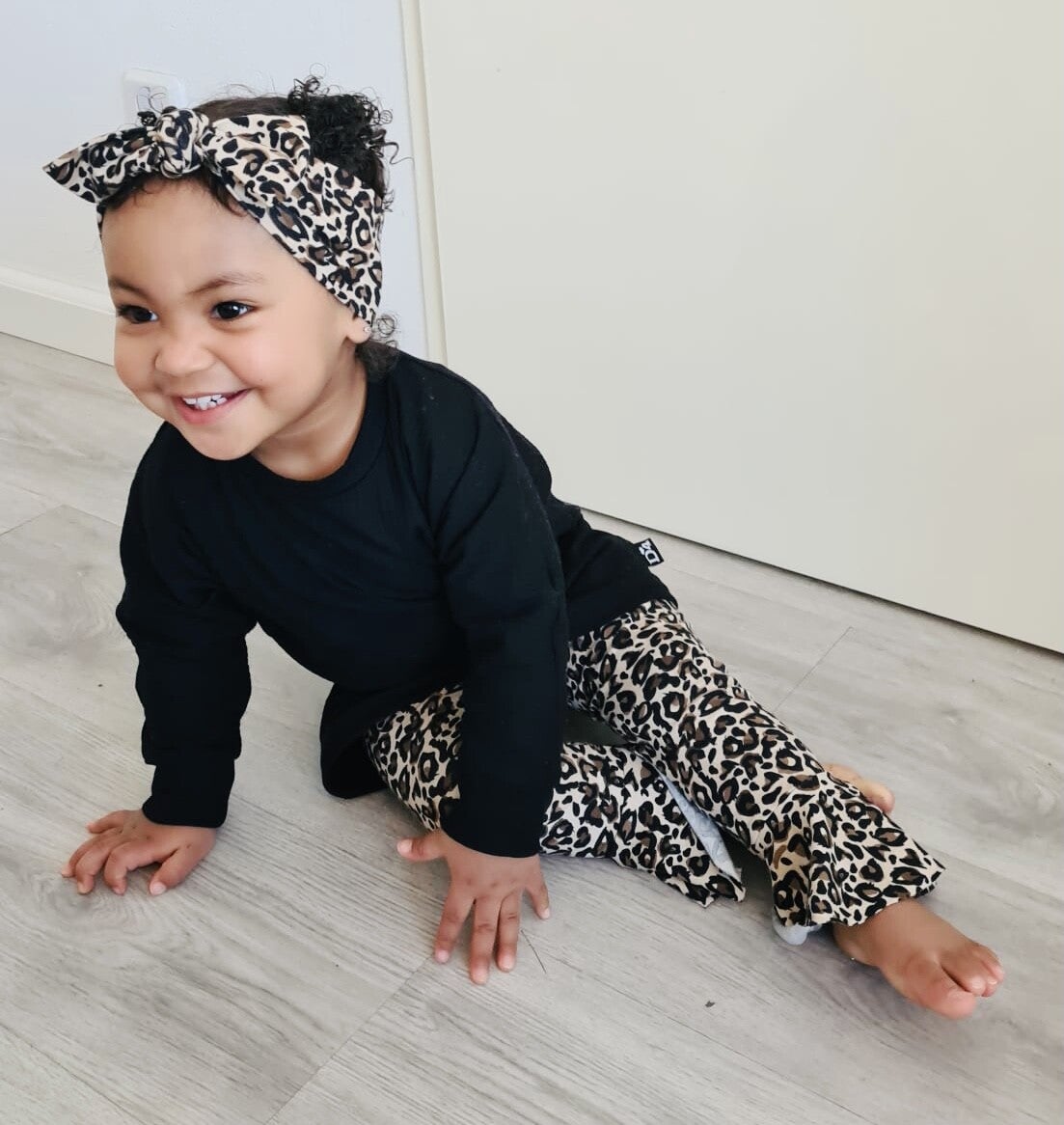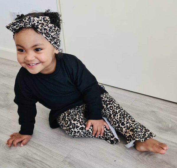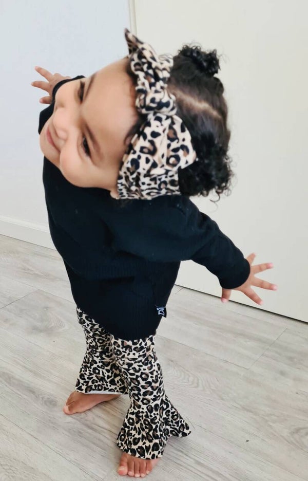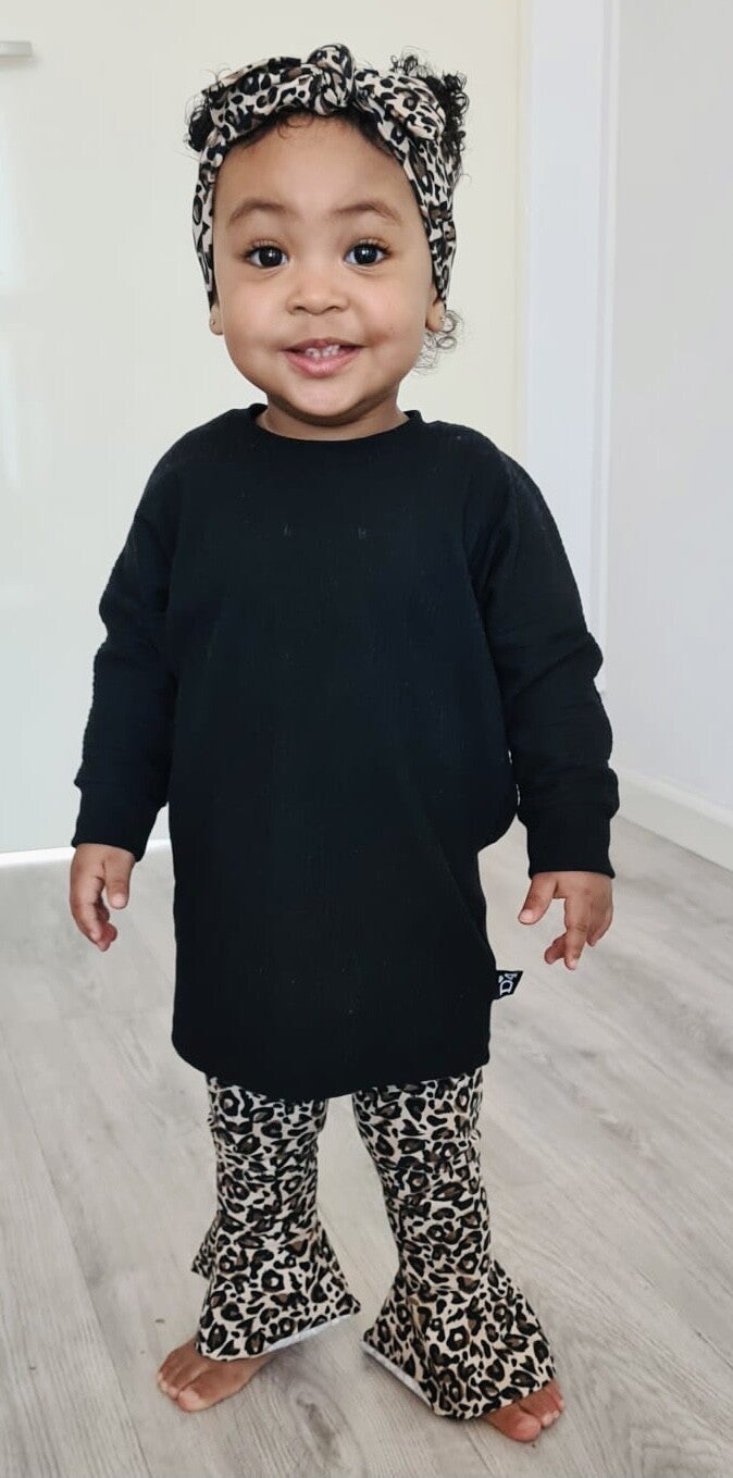 - Ruffle legging Leopard love- Oversized sweater zwart- Strikknoophaarband Leopard love