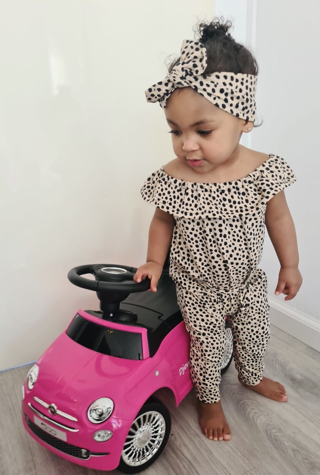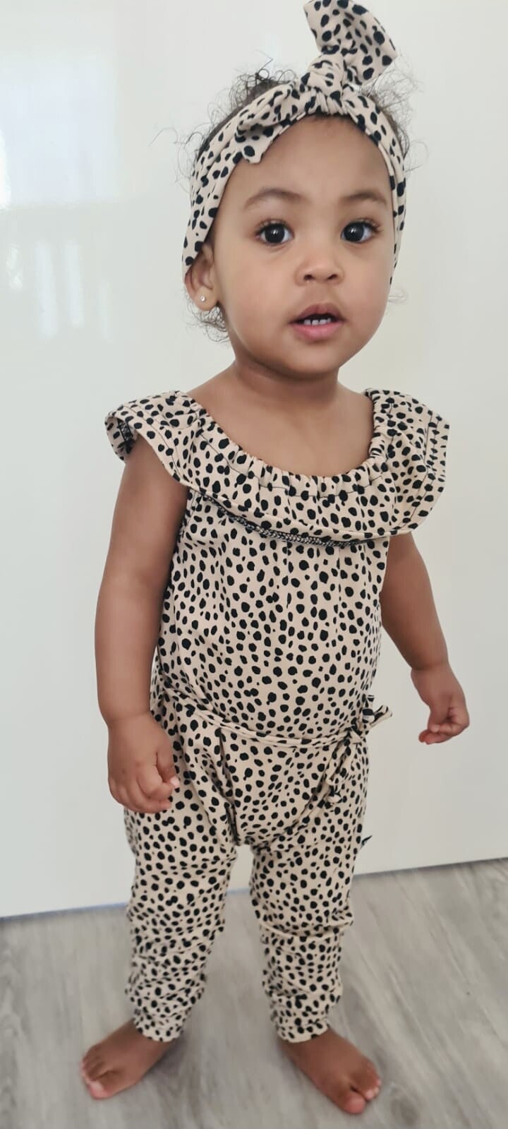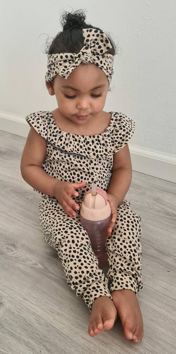 Het modelletje op de foto is 81cm lang en ze draagt hier maat 80/86.