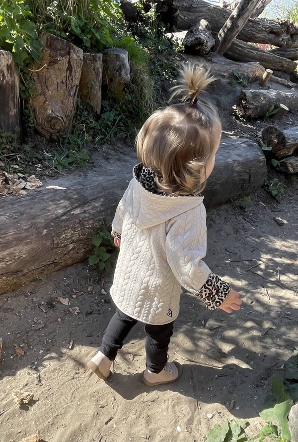Dit gave vest is aan beide kanten te dragen aan de ene kan een mooie cable stof aan de andere kant een mooi printje