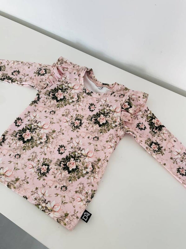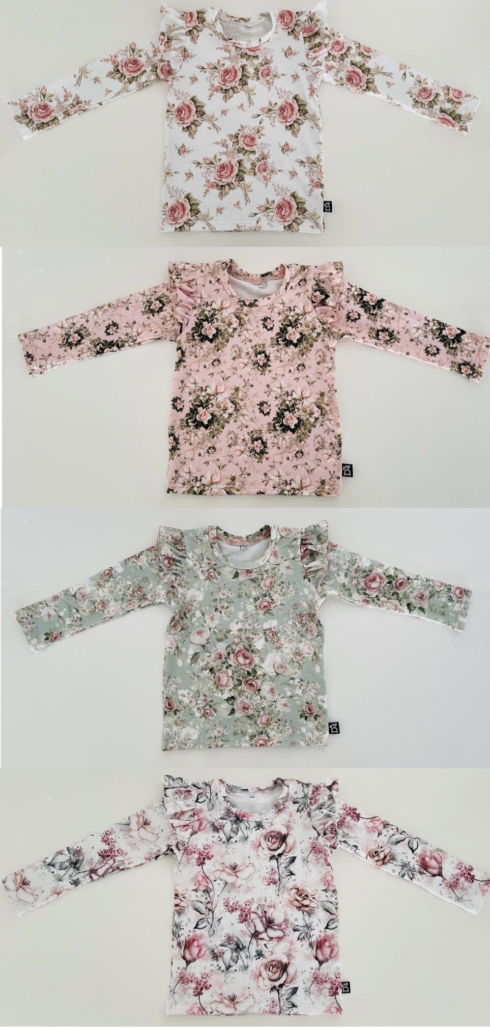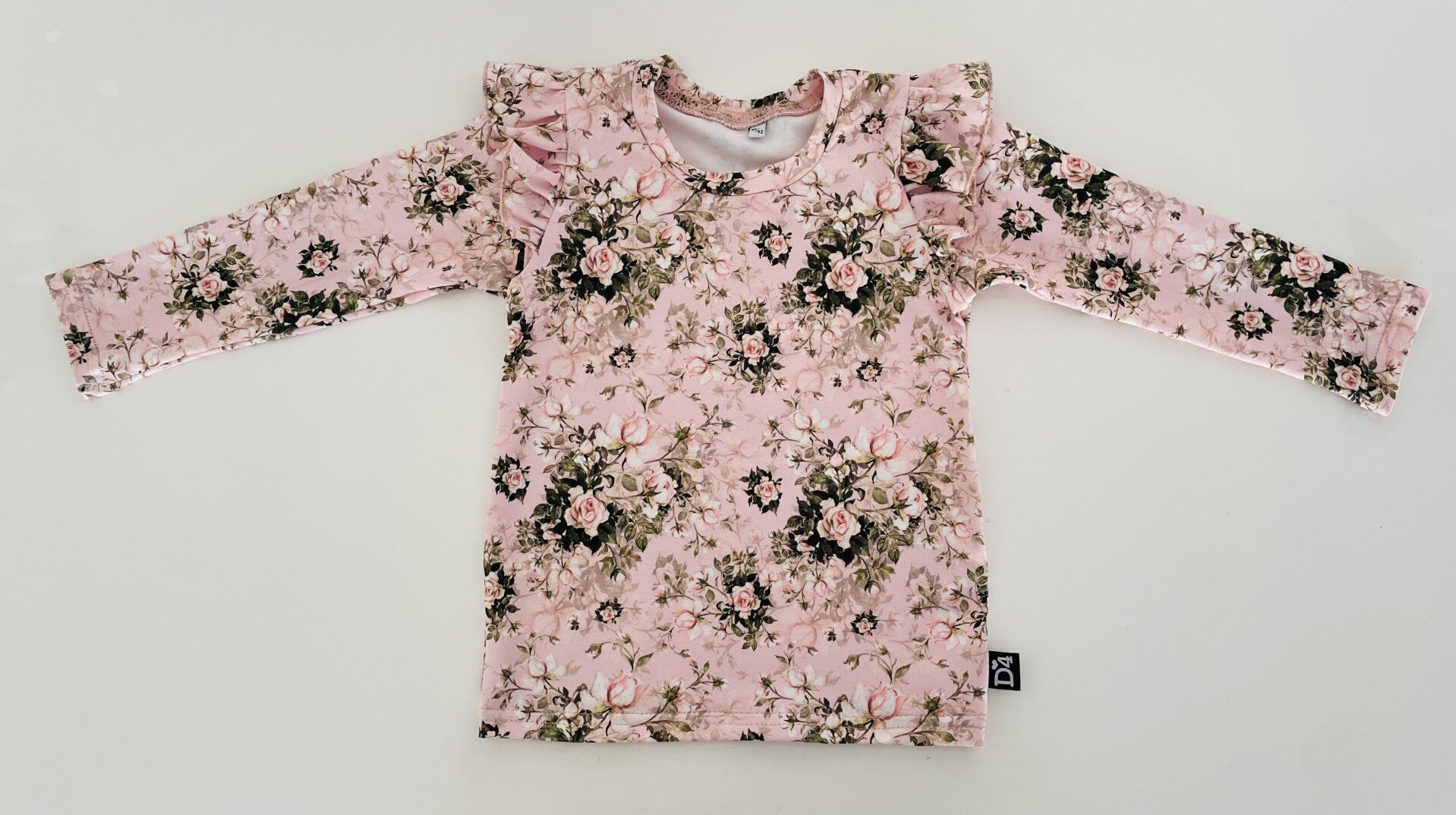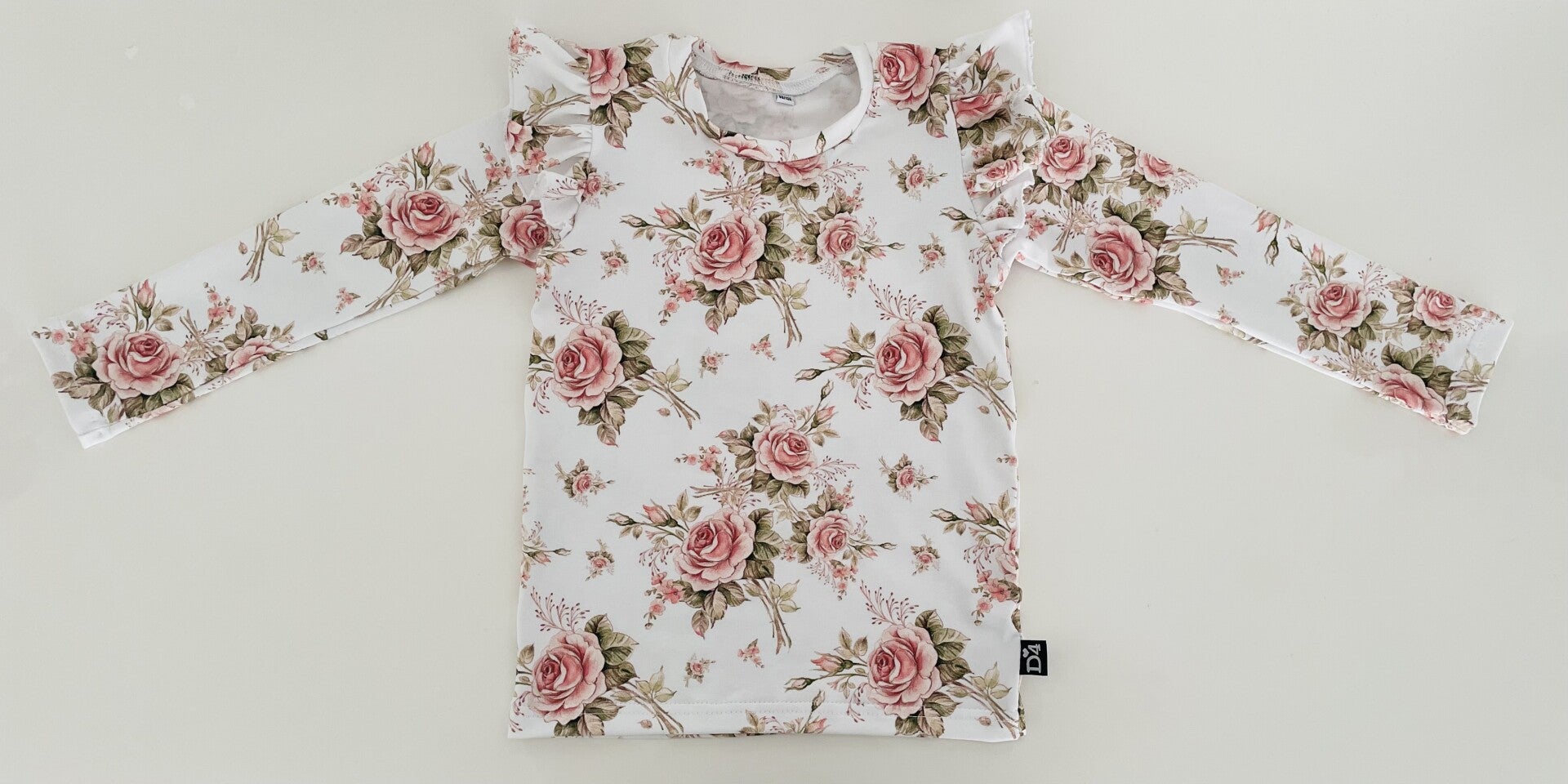 Dit shirtje sluit mooi aan en heeft ruffles op mouwen. De stof is gemaakt van een heerlijk zachte rekbare Tricot stof.