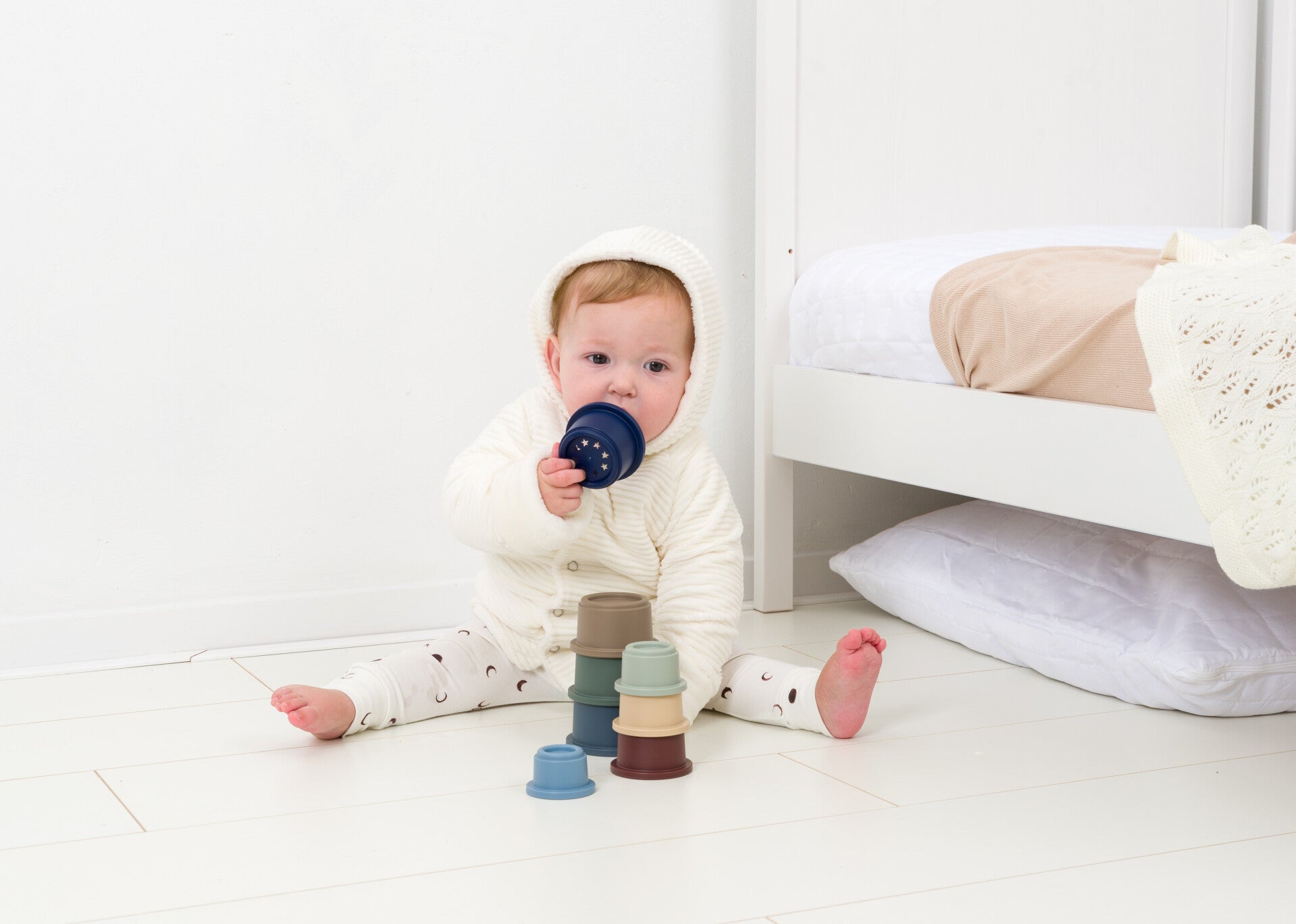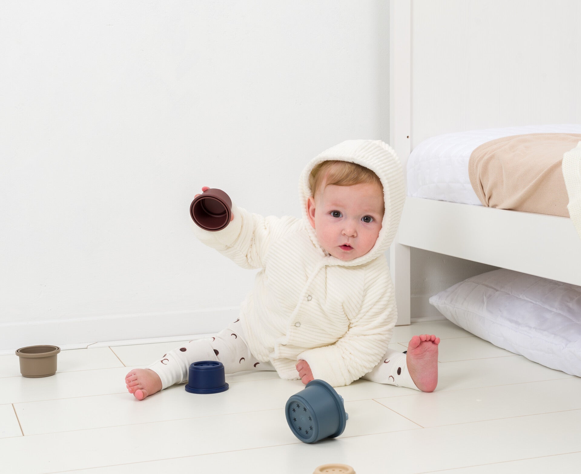 - Ribstof: 70% katoen, 25% polyester, 5% elastaan.