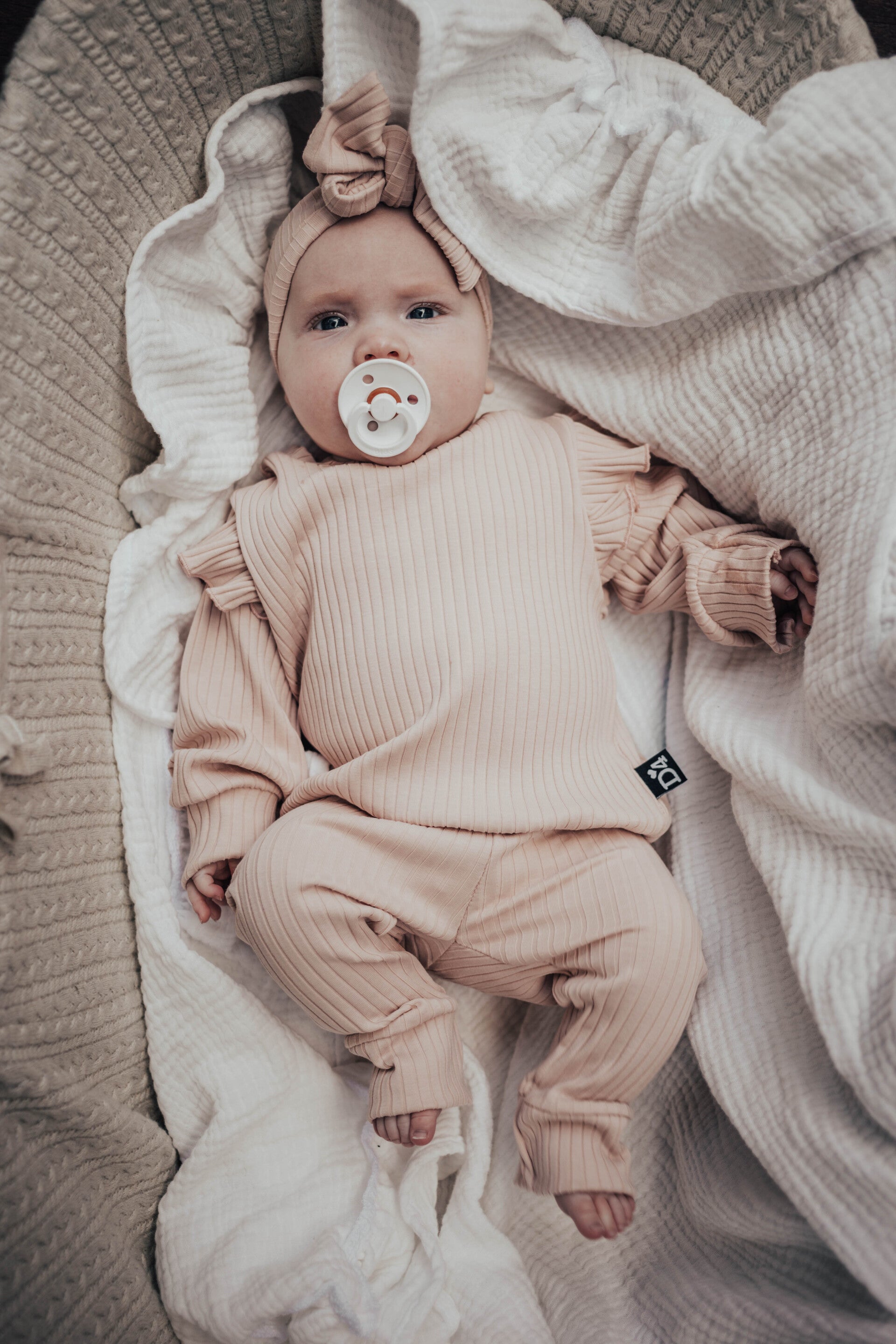 Mutsje en haarbandje zijn bij te bestellen.
