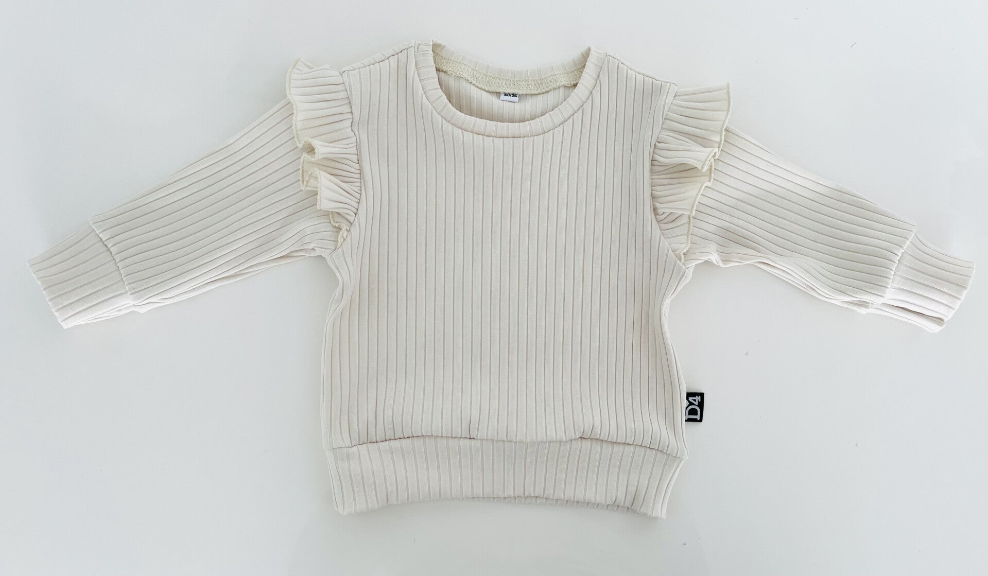 Mooie brede rib sweater met ruffle op de schouders.